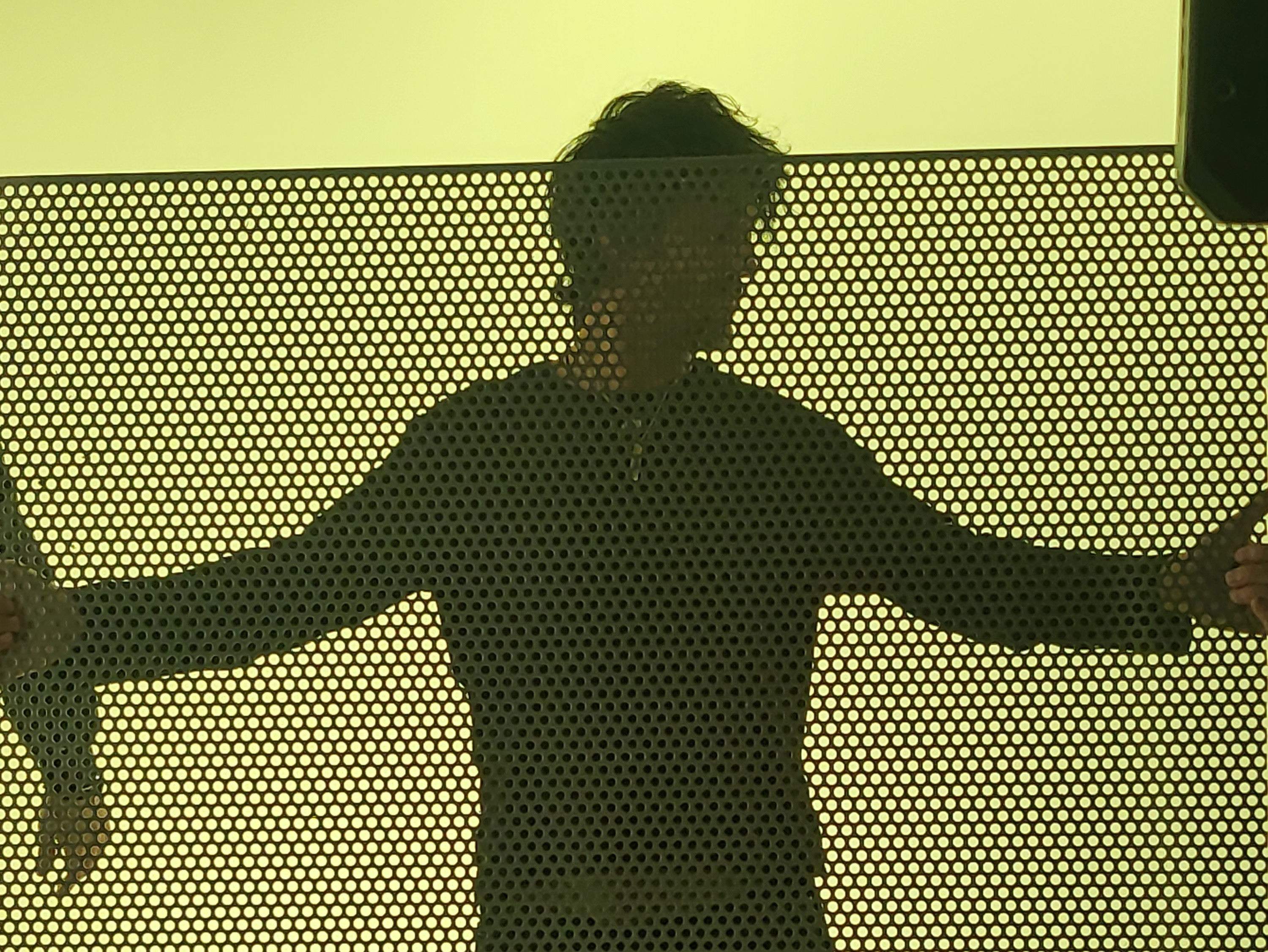 According to Peruta, art is the representation of space that cannot be confined, as it is moved by perpetual change. He therefore chooses to represent it through an innovative painting technique that can sustain the motion that the artist seeks in his works. Micro-perforated panels on which he paints with color overlays, creating a unique and immediately recognizable stylistic trait. This particular technique allows Peruta to space the detections of light and shadow, which are brought onto several planes, creating an unusual optical effect and determining an indefinite, shifting space, a space of relative truths and the only place where reality can be, perhaps, understood.